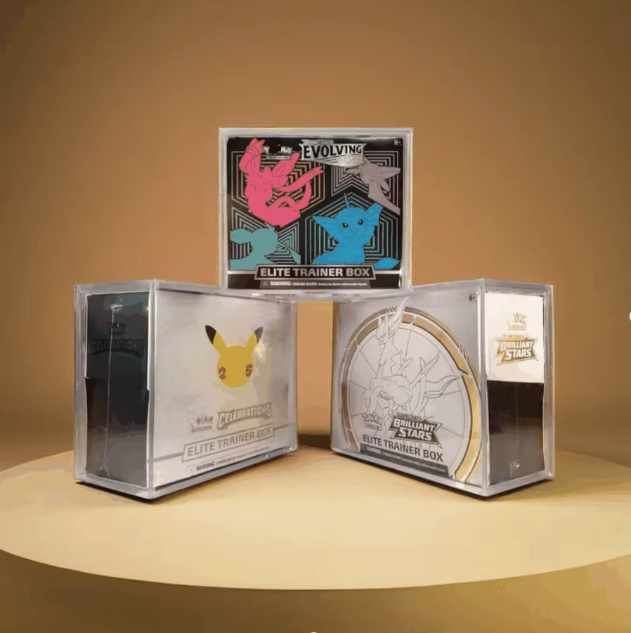 Premium acrylic cases for protecting and displaying sealed TCG products.